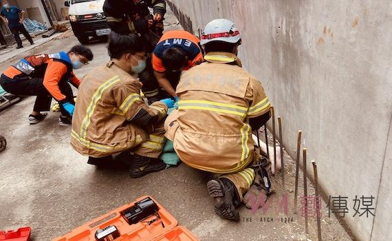 台南市消防局勤務中心下午1時59分許接獲報案,位於南區永成路有民眾因墜樓,身體被鋼筋插入,需要破壞器材與救護車救援。消防人員趕抵線場,在1處新建工地1樓發現,1名女子倒臥地上,下腹部及右腳插入鋼筋,消防人員立即以破壞剪剪斷3支鋼筋,緊急送醫救治。