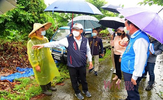 (南投新聞)【記者石振賢/南投報導】風雨無阻!縣長林明溱16日冒雨前往草屯鎮石川、上林、雙冬、平林、中原、御史等6里會勘5處道路改善工程、2處溪溝護岸補強工程、1處排水溝改善工程,詳細勘查後,確有改善必要,指示工務處儘速設計發包改善,尤其是溪溝護岸補強工程,需趕在汛期前完成,避免造成更大損害,總工程經費近900萬元。立委許淑華、草屯鎮長簡景賢也出席會勘,縣議員蔡銘軒、簡賜勝、唐曉棻、莊士傑、李洲忠等人則就建議案到場關心。
