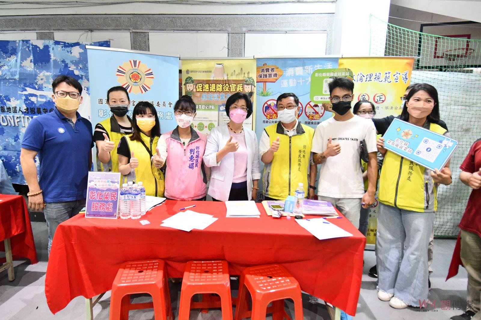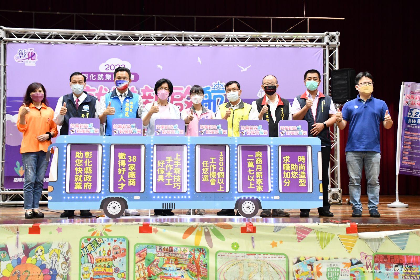 ▲2022「就業新啟航.薪福齊飛揚」就業博覽會,彰化縣長王惠美呼籲企業多給勞工加薪,讓更多勞工願意留在地方打拚。