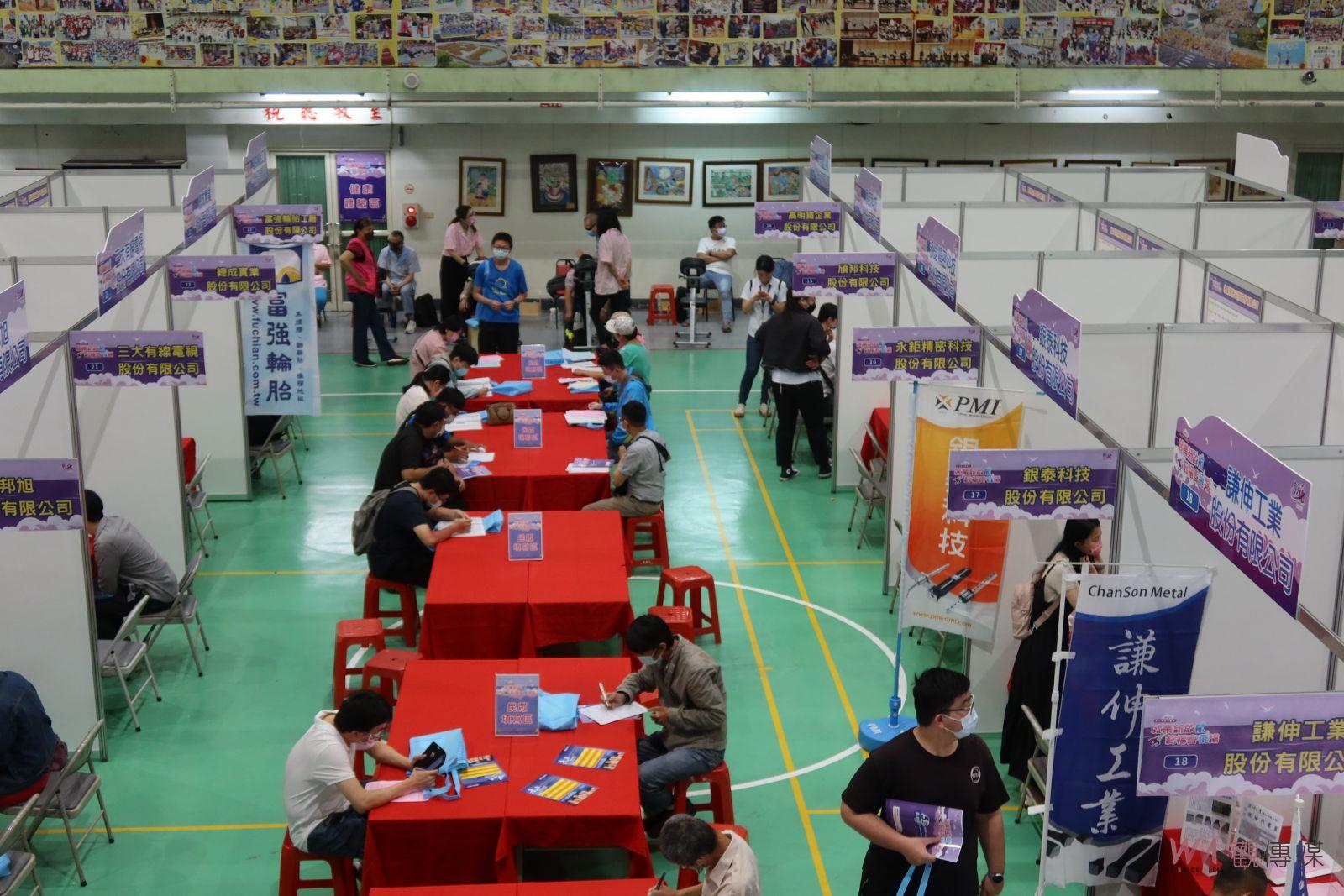 ▲彰化縣就業博覽會湧進求職民眾,機械廠祭出68K找好人才。