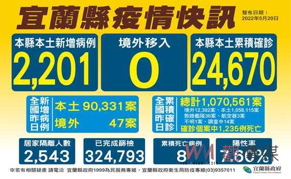 (宜蘭新聞)【記者陳俊傑/宜蘭報導】中央今(20)日宣布宜蘭縣新增2,201名確診個案。有鑒於確診人數逐漸攀升,為了讓民眾獲得快速的醫療服務,林姿妙縣長表示,宜蘭縣即日起推出一站式服務診所,共有35家診所參加,讓民眾快速又安全的就醫。