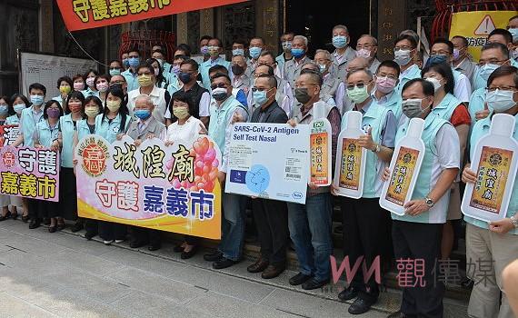 城隍廟賴永川董事長指出,國內疫情日趨嚴重,延燒快達高峰,快篩劑是非常重要的防疫關鍵,為發揚城隍爺慈悲為懷的精神,關懷全體市民健康需求,經過臨時常董會議討論一致同意,特別花費將近400萬的經費購買乾洗手及快篩劑,捐贈給嘉義市政府及國中小幼兒園使用,以防止疫情的擴散並守護市民的生命安全,該廟將於5/25(星期三)下午7時及5/29(星期日)上午9時「二時段」在城隍廟埕各免費發送500份(每份2劑)快篩劑給有迫切需要的民眾,送完為止。