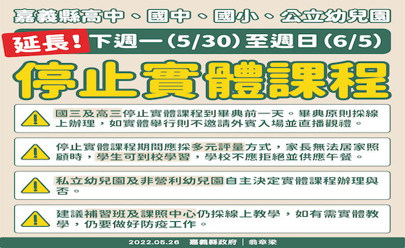 嘉義縣政府因應新冠疫情日益嚴重,基於保護學童的立場,與兼顧防疫、學生學習,決採以下四項作為: