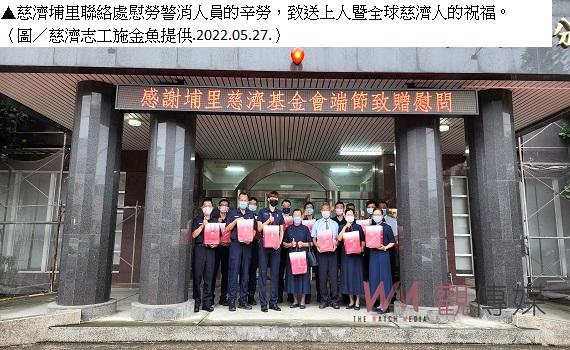 (南投新聞)【記者石振賢/南投報導】端午節前夕,慈濟志工分別前往南投縣埔里、國姓、仁愛等鄉鎮各警消單位,慰勞警消人員的辛勞,致送上人暨全球慈濟人的祝福,祝福端午佳節愉快,闔家平安。每一分結緣品都蘊含了慈濟志工溫馨的關懷,與滋潤警消人員日夜奔波辛勞的心靈。