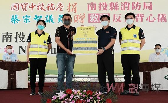 蔡宗智議員及國寶中投福座捐贈救護反光背心給予南投縣政府消防局第一線同仁執行緊急救護穿著使用,救護反光背心除了讓救護人員出勤時,民眾容易辨識外,反光條也都能夠提升同仁夜間或視線不良處執行緊急救護時的人身安全。