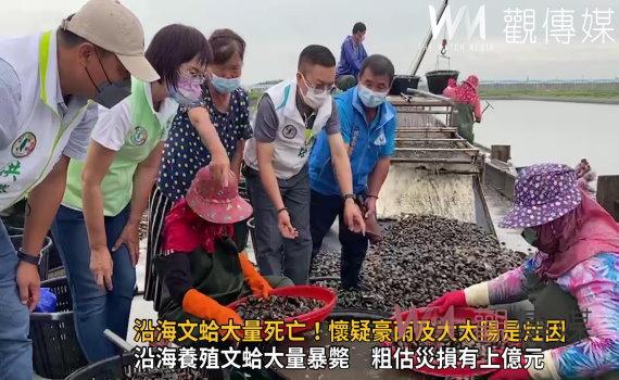 (彰化新聞)【記者陳雅芳/彰化報導】因連日豪雨,加上雨後陽光再曝曬,彰化縣芳苑鄉沿海養殖的文蛤大量暴斃死亡,農民損失慘重,立委陳素月今(8)日邀集農委會和縣府農業處官員會勘,官員認為災情嚴重,將研擬災害補助標準,目前由彰化縣水產養殖協會做初步的災害清查和造冊,農民先拍照存證,彰化縣養殖協會說,彰化縣此次文蛤損失高達九成,粗估災損有上億元。