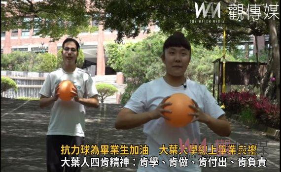 大葉大學特別致贈每位畢業生一顆抗力球,並錄製了運動健康管理學系學生在校園示範樂活極球舞的影片,讓畢業生可以手持抗力球,跟隨影片舞動青春活力,重溫校園美景回憶。
