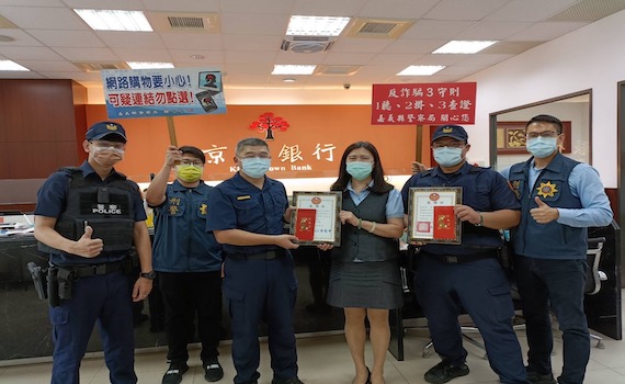 嘉義縣警察局民雄分局與轄區內的京城銀行大林分行、中華郵政大林郵局執行金融機構聯防時,分別在6月7至9日,連3天成功防阻詐騙集團對民眾巧計施詐3次,阻詐金額高達17萬6千元。民雄分局黃維章分局長為感謝金融機構的用心,特別率偵查隊長陳俊廷、副隊長謝武勲、大林所長曾博聖等人分別頒發感謝獎牌及禮券,感謝銀行行員及郵局局員們警覺性高,且能主動積極關懷被害人,使民眾避免遭受詐騙集團的詐騙,保住辛苦所得的血汗錢,並能提升警民合作,成功防阻詐騙。