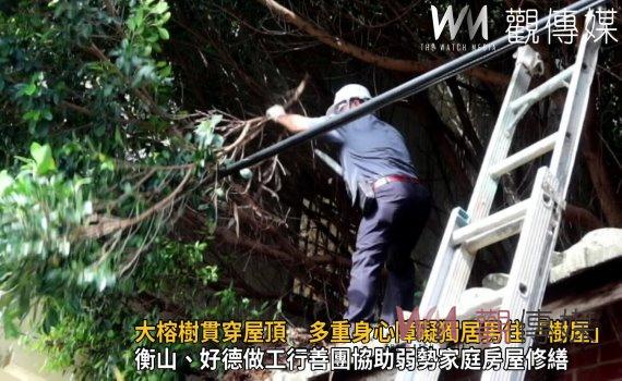 (彰化新聞)【記者陳雅芳/彰化報導】讓身心障礙族群懷抱一個溫暖的居家環境!彰化縣埔心鄉陳姓低收入戶罹患多重身心障礙疾病,居家環境髒亂之外,內部亦有多處老舊損壞待修,大榕樹還貫穿屋頂上,成了名副其實「樹屋」,衡山社福基金會彰化行善會志工今(14)日前往修繕,至少3天砍樹和清除屋內垃圾,如果天氣晴朗適合施工,最快一周後可讓老屋煥然一新。