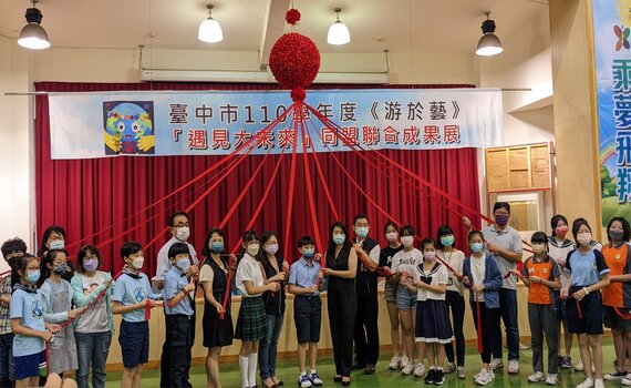 (台中新聞)【記者顏淑娟/台中報導】台中市政府教育局連續多年辦理《游於藝》巡迴展,讓孩子體驗不同藝術風貌,今(5)日在北屯區仁美國小舉辦「遇見大未來」成果展,由參與計畫的13所學校及市府環保局一同參展,設置「遇見同盟大未來展區」、「希望的方舟在仁美」、「環保小學堂闖關區」、「島嶼的色.溫-台灣人文影像展」四大主題展區,其中「環保小學堂闖關區」則由學校與環保局一同設計,豐富活動吸引學童熱烈參與。