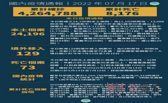 (桃園新聞)【記者曾平/桃園報導】疫情呈現緩步下降趨勢桃園今(17)日新增2,607例本土個案,桃園市衛生局長王文彥指出,相較昨(16)日2,661例,桃園疫情單日下降2.03 %,其中65歲以上個案占8.01 %、18歲以下個案占20.47 %;而全國今日則是新增2萬4,196例,較昨(16)日2萬5,251例,下降4.18 %,呈現緩步下降趨勢。