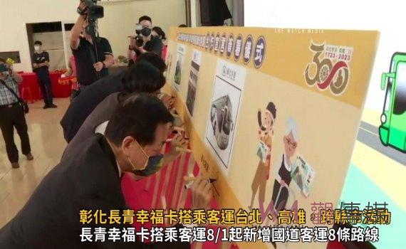 ▲彰化縣政府舉行彰化縣長青幸福卡與統聯客運、國光客運簽署合作宣言,宣告8月1日新增8條國道客運路線納入免費乘車補助範圍。