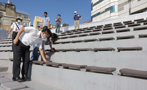 ▲新竹市立棒球場賽事確定延期,代理市長陳章賢宣布即刻啟動改善小組,現地會勘確認改善重點。