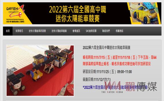 SAE中華民國自動機工程學會從2015年開始委託大葉大學辦理「全國高中職迷你太陽能車競賽」,今年將是第六屆舉辦,除了提供高中職學生比賽舞台,學校更在賽前舉辦研習營,教高中職學生太陽能車相關原理及應用,透過製作太陽能車的實務經驗,推動綠能教育向下扎根。