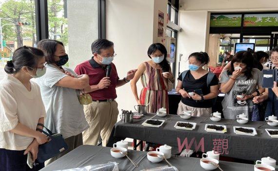 ▲南投縣凍頂茶業發展協會羅正彬理事長(中)介紹台灣茶品評。