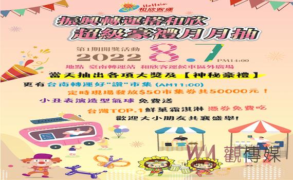 和欣感恩回饋,擴大舉辦抽獎嘉年華,加碼「和欣鐵粉免費遊台南」,7日當天除抽獎活動外,同場地另有台南市交通局、 觀光旅遊局、台南市文化觀光伴手禮產業發展協會的「台南轉運好讚市集」活動,和欣客運加碼贈送1000張面額50元之轉運市集振興券,歡迎遊客搭乘客運來台南旅遊轉運。