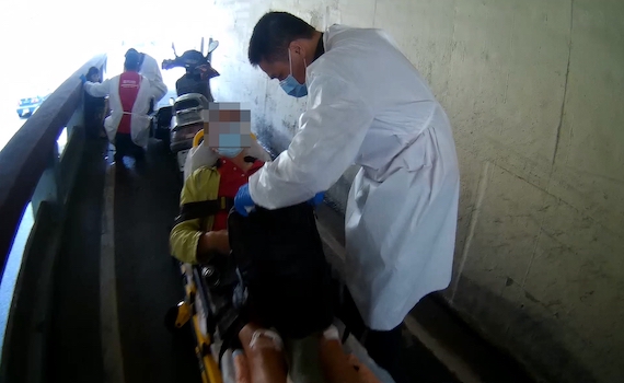 消防局指出,經詢問2名機車傷者事發過程,其中一名機車騎士指自己行經地下道內時,因戴墨鏡突然變黑,沒看清前方路況而發生事故。
