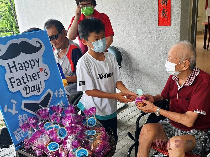 餅乾製作完畢,大家一起包裝,小朋友親手將禮物送給爸比,並獻上害羞的一吻,讓爸爸笑開懷;而後到養護區分送高齡與失智長輩,代替子女們傳遞關懷,共同祝福總是不善言辭與表達,曾一生操勞為家打拼、遮風避雨的爸爸們父親節快樂,也串連起三代間的情感與互動,留下美好回憶。
