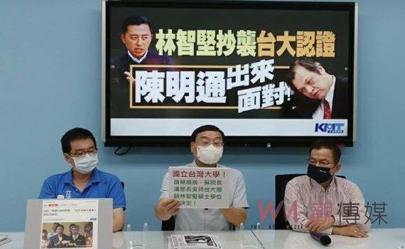 (台北新聞)【記者潘明賜/台北報導】民進黨桃園市長參選人林智堅碩士論文涉及抄襲,9日被台大撤銷碩士學位後,餘波盪漾。國民黨立法院黨團今(10)日上午舉行「林智堅抄襲台大認證,陳明通出來面對」記者會,左右開弓砲火猛烈,抨擊國安局長陳明通,在兩岸局勢嚴峻之際,竟然連續3次發表聲明,力挺愛徒林智堅的論文抄襲事件,已失格不適任,希望知所進退,主動辭職下台。同時痛批前副總統陳建仁,仍舊力挺林智堅論文抄襲案,昧著學術良心說「還他清白」,並呼籲身為台大教授、中研院特約研究員、民進黨台北市長參選人陳時中競選總部主委的陳建仁,不要模糊焦點,踐踏學術尊嚴。