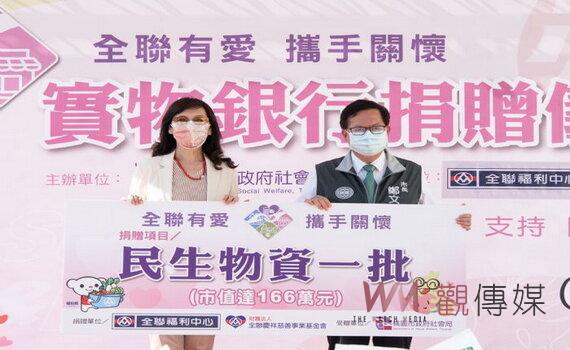 (桃園新聞)【記者曾平/桃園報導】「全聯有愛,攜手關懷」共同守護桃園弱勢家庭,全聯再次捐贈桃園安家實物銀行物資一批,鄭文燦市長今天出席捐贈儀式時表示,全聯福利中心已成為台灣人生活的一部分,且相當熱心公益,自106年起開始捐贈桃園市安家實物銀行物資,今年再次捐贈友善貼心用品、洗髮精及沐浴乳、成人紙尿褲等民生用品,市值逾166萬元,累計捐贈已超過551萬元,共同守護弱勢家庭的用心,外界都可以感受全聯這份溫暖。