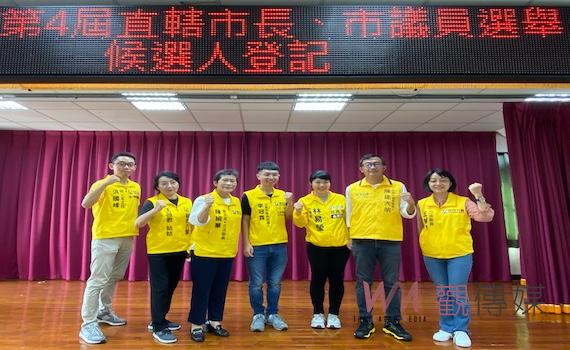 永康區現任市議員林易瑩、中西區北區市議員參選人李冠霖、安南區市議員參選人陳建大明,由時代力量黨主席陳椒華、立委王婉諭、中華民國兒童權益促進協會創會理事長王薇君陪同,完成參選登記。