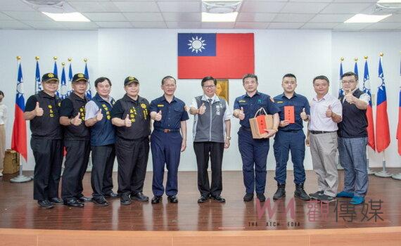 今日主要是表揚查獲「國人遭詐出境被拘禁案」及緝獲「花蓮外役監脫逃犯」等重大案件的警察同仁,包括警察局中壢分局分局長蕭欽杰、偵查隊長陳志鵬、普仁派出所長甘博倫、桃園分局偵查隊長陳志維、埔子派出所長簡國峻、警員王孝慈、八德分局偵查隊長呂俊池、小隊長楊宜霖、偵查佐林昱良、龍潭分局偵查隊長蔡效岳、警員陳驛隴、翁梓豪等12位警察同仁,感謝他們在偵查過程中,不辭辛勞,克服種種的困難與挑戰,維護社會治安。