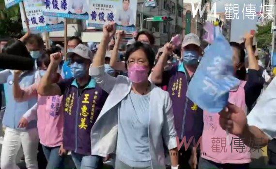 ▲彰化縣長王惠美早上在醫界防疫英雄與青農陪伴下,前往彰化縣選委會完成登記爭取連任。