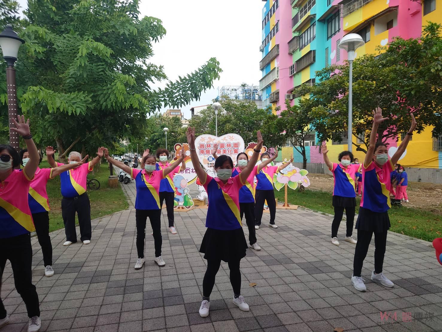 ▲員林第一座大型彩繪牆舉辦啟用典禮,在社區志工們精彩表演中為典禮揭開序幕,彩繪牆整體採用簡明的線條設計,展現出朝氣與活力。