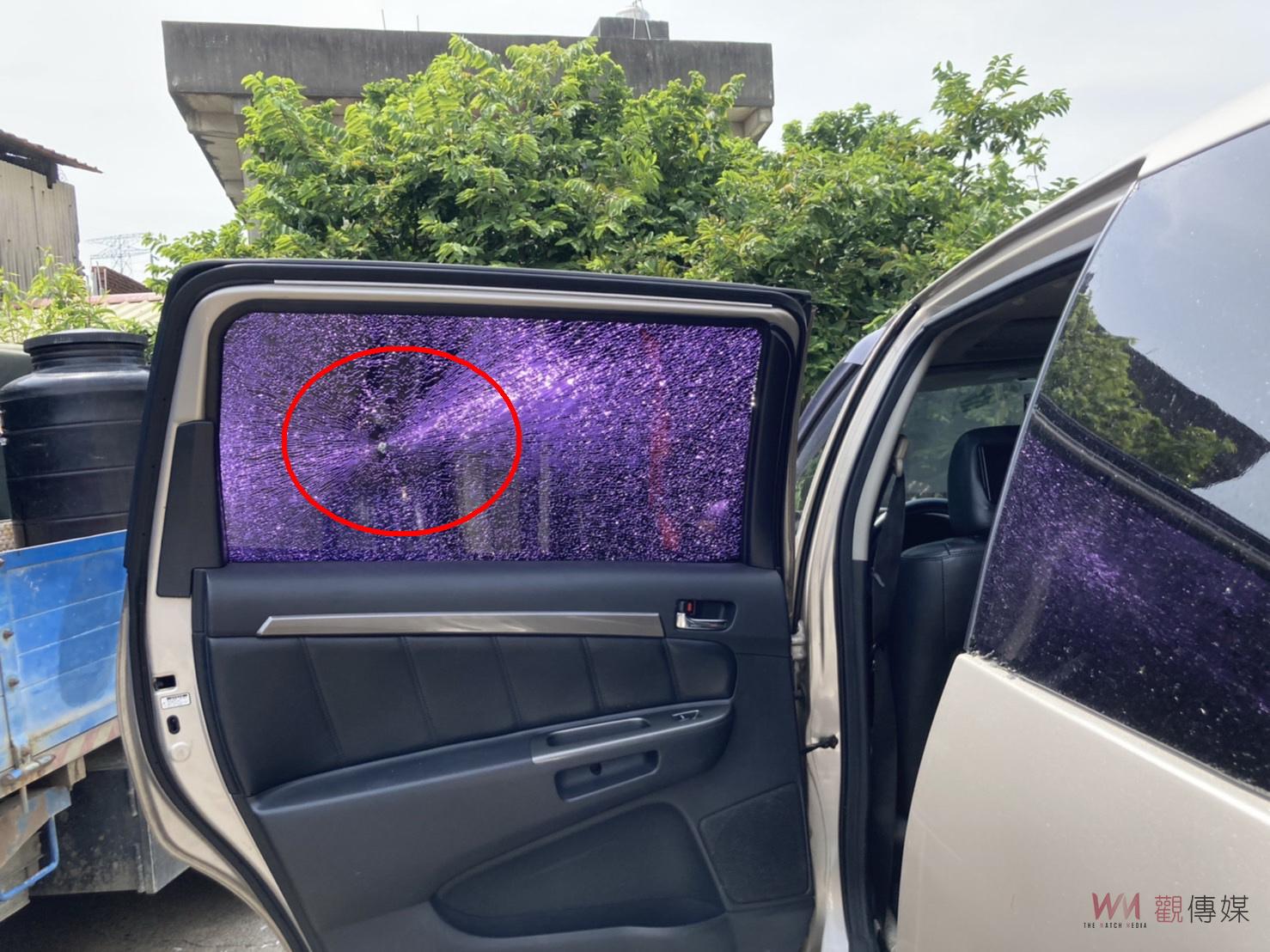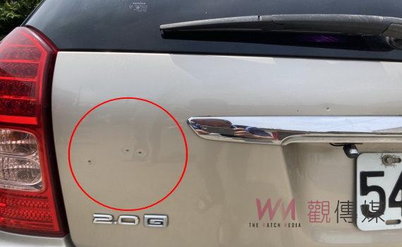 ▲警方調查,BB彈射擊參選人侄子的車子,車子出現7處彈孔,警方到場採證也發現多顆BB彈。