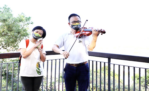 ▲在觀景平台者上先欣賞一曲輕鬆手提琴演奏。