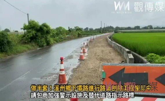 此工程由彰化縣政府委請溪州鄉公所發包,縣府工務處、溪州鄉公所及當地村長及代表與學生家長到場會勘,結論1為顧及通行車輛及學生安全請施工單位設置替代道路通行指引標示,2請及時清理路面碎石砂土以保障用路人安全,3請夜間警示燈設置加強。