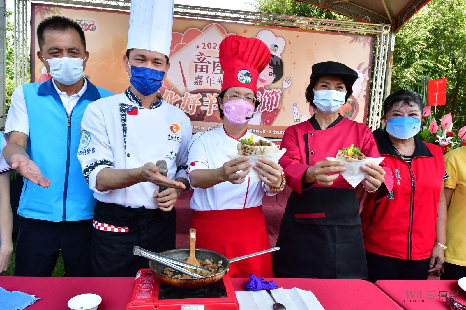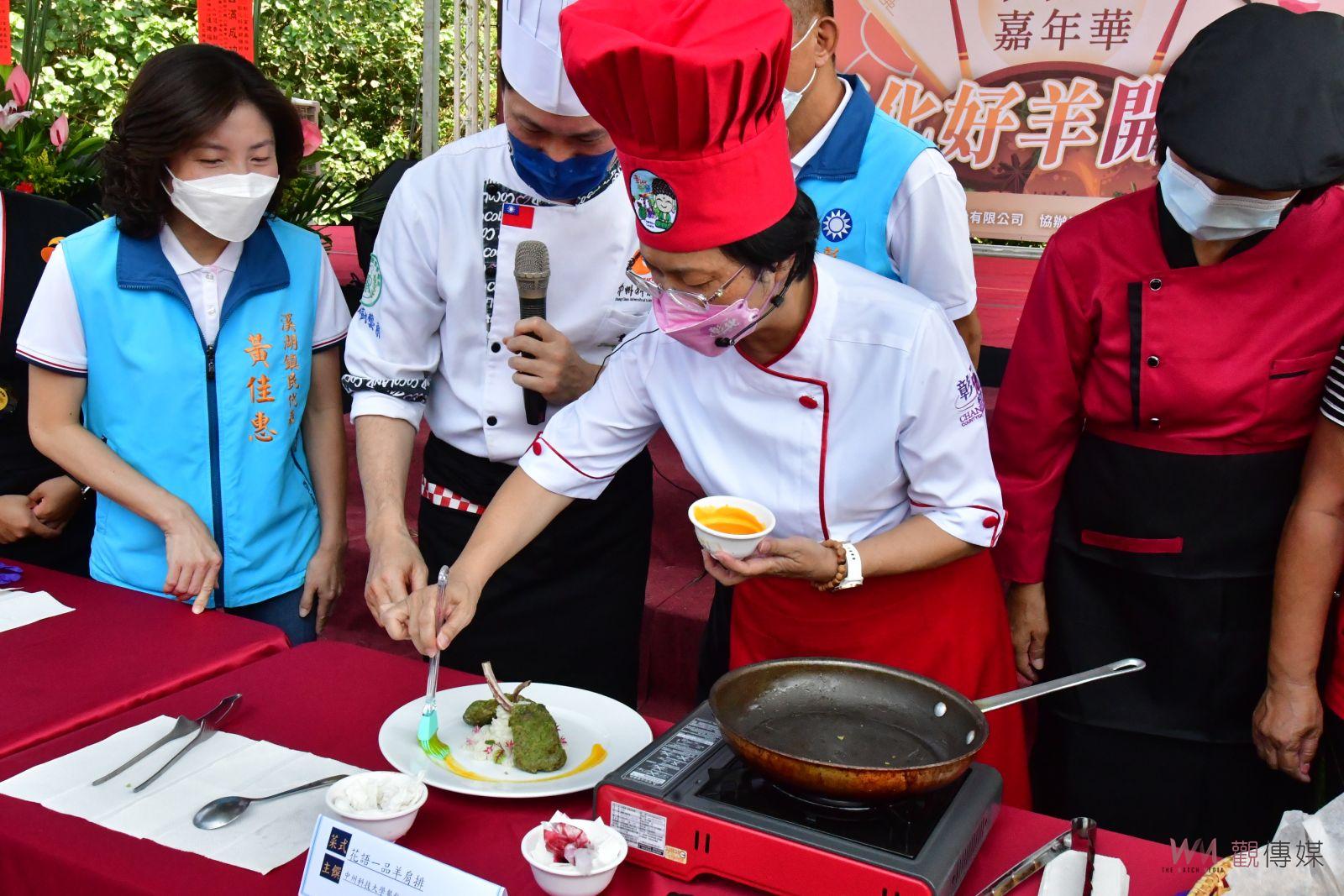 ▲彰化縣長王惠美更化身廚師做出一道道料理推廣在地優質羊肉。