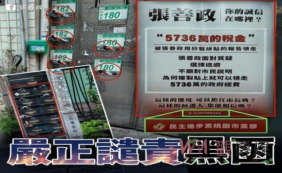 (桃園新聞)【記者潘明賜/桃園報導】國民黨桃園市長候選人張善政今(17)日在臉書中指出,昨日地方後援會的朋友傳來照片,署名民進黨桃園市黨部的黑函文宣,遍布大街小巷,指控他當年在宏碁的農委會委託報告是「5,736萬稅金用抄襲拼貼報告領走」。張善政強調,這是赤裸裸的造謠抹黑,內容完全不是事實。他已經多次澄清,當年的委託案,他沒有一毛錢進口袋,否則就退選。