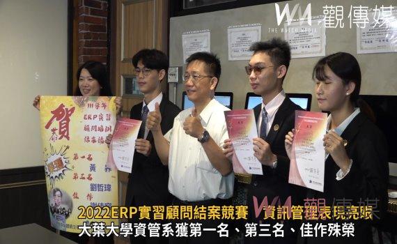(彰化新聞)【記者陳雅芳/彰化報導】大葉大學資訊管理學系大四生黃昦、劉哲瑋、謝佳容等三位同學參加中華企業資源規劃學會舉辦「2022ERP實習顧問結案競賽」,分別獲第一名、第三名、和佳作,表現亮眼!