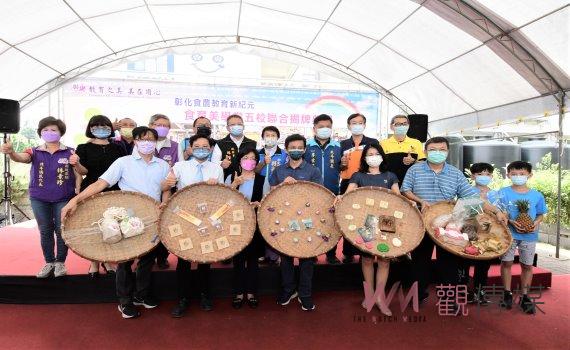 ▲彰化縣政府在北斗國中辦理食育美學堂5校聯合揭牌典禮,這5校利用閒置空間打造食育美學堂,推廣吃在地、愛家鄉的觀念。