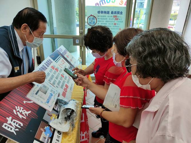 ▲嘉義地檢署人員向長輩們宣導反賄選。