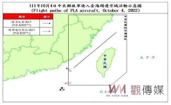 地方新聞新聞 國軍偵獲共機9架次共艦4艘次 在台海周邊海空域活動 由 觀傳媒 提供 - 2022 年 10 月 4 日 上午 10:52 FacebookTwitterWhatsAppLINECopy URL (台北新聞)【記者潘明賜/台北報導】國防部今(4)晚表示,迄下午5時止,偵獲共機9架次,其中進入西南空域2架次、共艦4艘次,持續在台灣周邊海空域活動。 國防部說,國軍運用任務機、艦及岸置飛彈系統嚴密監控與應處。(圖片由國防部提供)