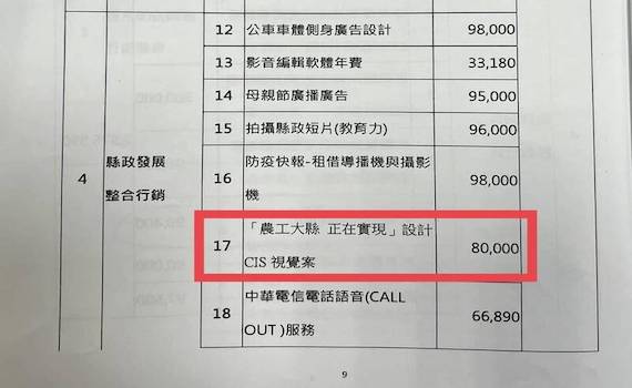 (嘉義新聞)【記者 惲 朋 /嘉義報導】國民黨嘉義縣長候選人王育敏競選團隊指,嘉義縣議員詹琬蓁、李國勝日前質疑,縣長翁章梁在臉書上發布的競選影片,開頭使用「農工大縣,正在實現」的文字視覺設計與縣府花費8萬元委外製作的「農工大縣,正在實現」設計CIS視覺案相同,直指翁章梁的競選影片使用縣府預算的設計,公器私用。然而翁章梁回應該字樣為「公版」的文字圖樣,也有其他民間團體在使用。