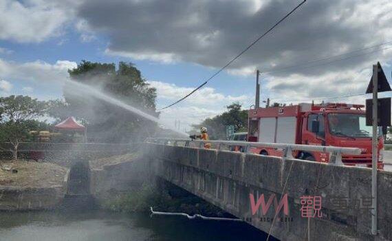 (桃園新聞)【記者潘明賜/桃園報導】鑑於於近年多家大型工廠發生火災,伴隨著消防廢水衍生複合式水污染事件,為強化台灣北區聯防體系,包含基隆市、台北市、新北市、桃園市、新竹縣、新竹市等,河川水體污染通報及應變能力,桃園市政府今(6)日下午2時在桃園市與新竹縣交界處福興溪新湖橋,辦理111年度水體污染事件緊急應變聯防體系實兵演練,以提升跨縣市之緊急應變及協調支援合作能力,演練項一包括:環保局放攔油索阻絕污染、消防局灑水降空氣油料濃度 等 ,模擬防堵污染擴散、縮短水污染緊急應變處理時間,演練逼真圓滿成功。
