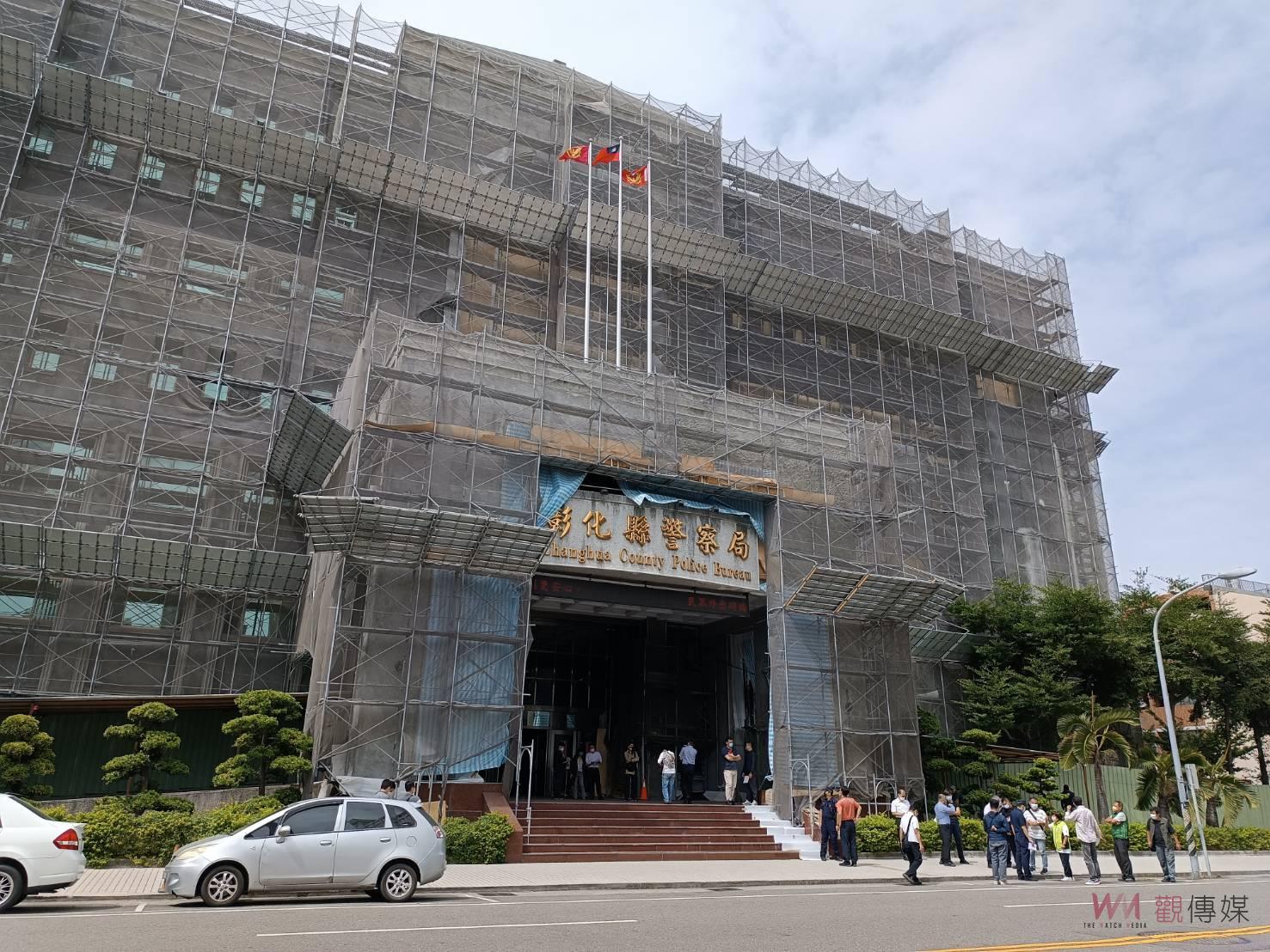 ▲溪州鄉農民陳忠杰遭彰化縣議員黃盛祿提告在縣議員候選人江熊一楓及前縣議員李俊諭等人在律師陪同到縣警局陳情。