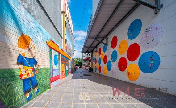 這次在楊梅營造的後巷環境改造,特別融合在地客家文化,以「擂茶」、「花傘」、「花鼓」等元素,並結合「落羽松秘境」、「仙草花海」、「富岡老街—呂家聲洋樓」等楊梅景點,不僅呈現出富有在地特色的拍照打卡景點,也讓大家感受到楊梅濃濃的人情味。