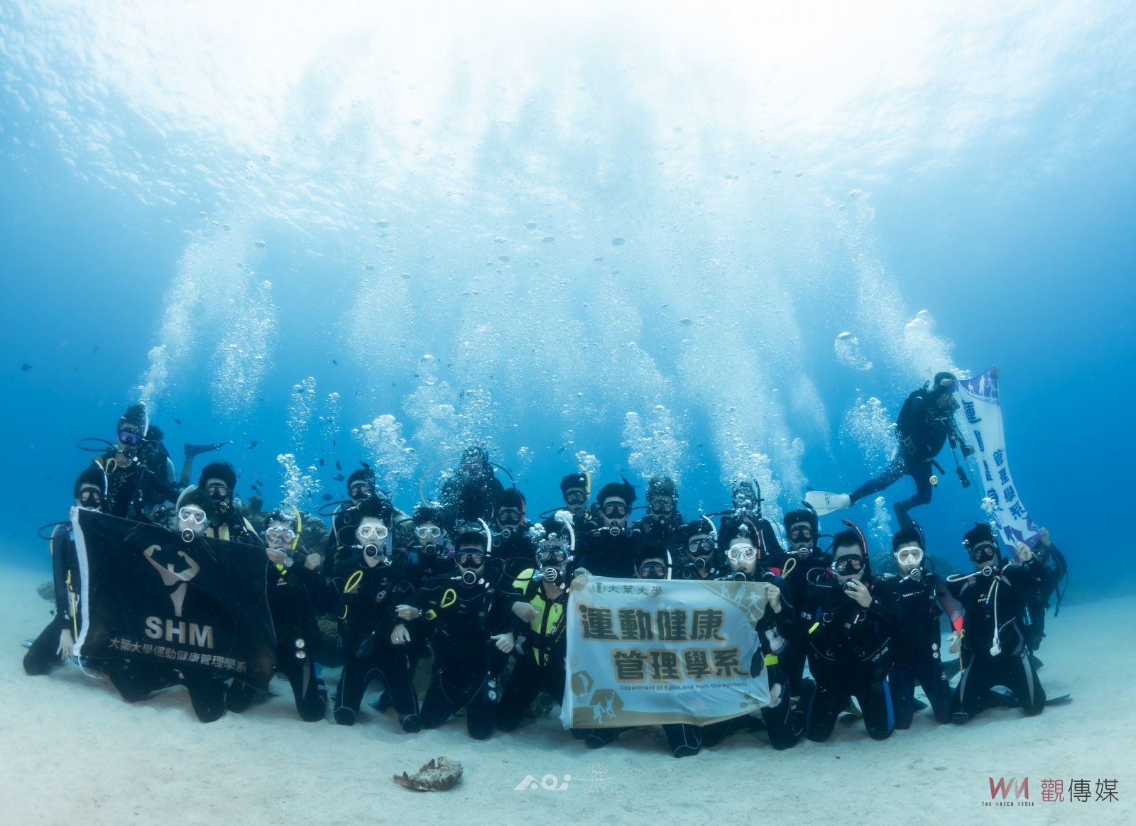 (彰化新聞)【記者陳雅芳/彰化報導】大葉大學運動健康管理學系「休閒運動實務-進階開放水域潛水」課程,將教室移到台東綠島,邀請專業教練共同教學,輔導學生報考國際PADI AOW進階開放水域證照,有23位同學參加考照全數通過,考照通過率百分百。消息傳回學校,讓全校師生都相當開心,同學優異的表現也為今年33週年校慶獻上一份最好的禮物。