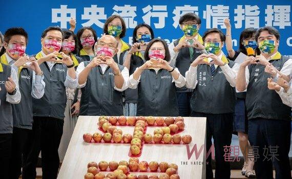 (台北新聞)【記者潘明賜/台北報導】「COVID-19防疫1,000天–千錘百鍊、蘋安幸福」活動,今(15)日在衛生福利部疾病管制署舉行,蔡英文總統與行政院長蘇貞昌聯袂出席,除了互贈「平安蘋果」外,也逐一發送「平安蘋果」,給現場防疫同仁,象徵「千錘百鍊‧平安幸福」。蔡總統致詞感謝所有防疫工作夥伴的付出和貢獻,為台灣辛苦拚了1,000天。蔡總統表示,台灣發展的腳步,沒有因為疫情停下來。現在更要加把勁,讓台灣大步前進。