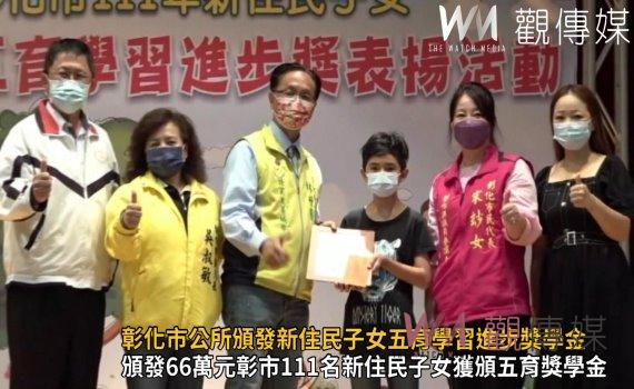 (彰化新聞)【記者陳雅芳/彰化報導】搶頭香!彰化市公所今(19)日頒獎表揚彰化市各國中小學五育學習、品德、態度有明顯進步的新住民子女,共有111位優秀學生,其中包括國中生38位、國小生73位。市長林世賢頒發獎金66萬元以資鼓勵,期勉其向上向善的精神與決心;這也是首開風氣之先,由鄉鎮市公所開辦提供新住民子女五育學習進步獎學金的案例。