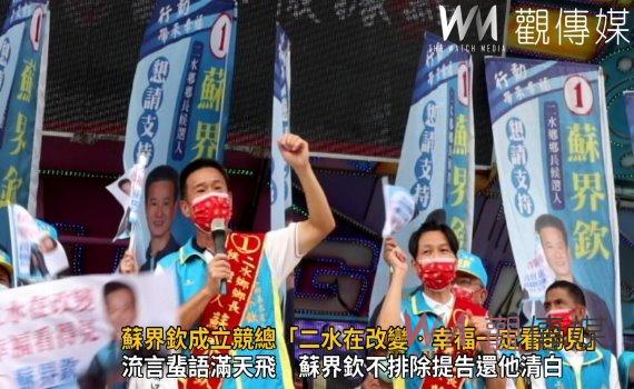 二水鄉人口數不到1萬5千人,只贏線西鄉,但地方派系眾多,從鄉農會選舉延伸到下屆鄉長選舉,現任鄉長蘇界欽尋求連任,今(21)日成立競選總部,蘇界欽帶領團隊至安德宮向媽祖稟報,隨即引領團隊進入活動會場,場內、場外旗海飛舞,蘇界欽當選、蘇界欽當選聲此起彼落。