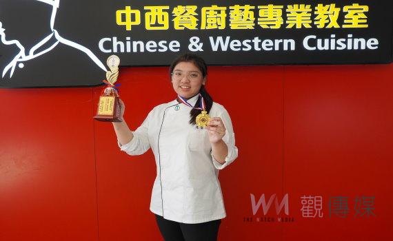 大二生管世安的「柳綠花紅與甘之如飴」獲頒金牌,大一生曹斐嬿的「黑月蛋糕與花圓千層」榮獲銅牌,大一生曾佳芬的「檸霜塔與可可瓦茲」獲得佳作,兩位一年級學生都是大學才開始學習烘焙,第一次參賽就能有好成績,值得鼓勵。