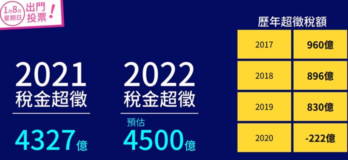 台北市立委補選「亮劍」!國民黨候選人王鴻薇今(20)日於黨中央自辦政見發表會,提出政府近年超徵稅收嚴重,過去兩年每年超收4300億元,今年預估也超徵4500億元,6年至少超徵1.1兆元,被政府拿來亂花,她主張應仿效先進國家,「還稅於民」。