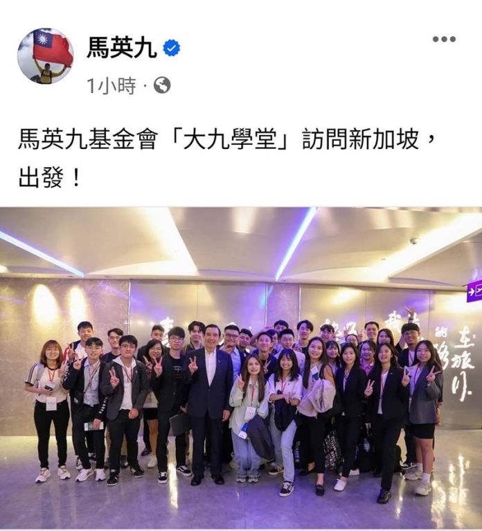 馬前總統辦公室今(3)日表示,馬前總統今天上午率馬英九基金會「大九學堂」30名學員訪問新加坡;馬前總統將出席「亞洲前瞻峰會」擔任與談人,也將率同學子參訪新加坡重要建設,並與李光耀公共政策學院交流。