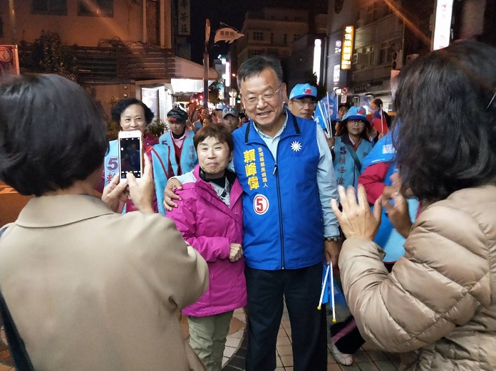 賴峰偉遊行隊伍行經黃健忠競選總部,雖屬不同陣營,賴峰偉和黃健忠相互握手致意,彼此加油打氣祝福對方當選。拜票隊伍秩序良好,最終順利在晚間9點回到競選總部。