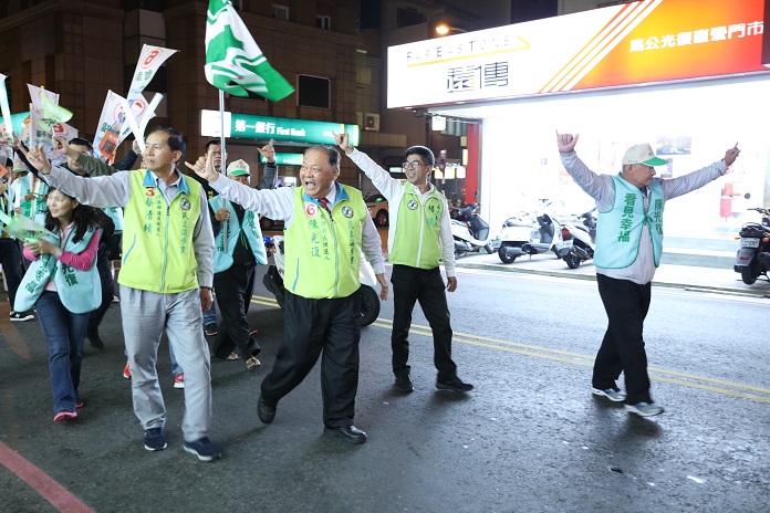選前之夜,為求在百里侯之爭勝選,綠營拚連任的縣長陳光復,以及藍營力求重返榮耀的前縣長賴峰偉,雙方無不全力造勢,掃街拜票爭取選民支持。